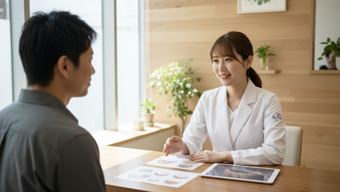 阪東橋歯科クリニックでは、複数の治療選択肢を提示し、患者さまが納得した上で治療を進めることを大切にしています。メリットだけでなく、デメリットや注意点も丁寧に説明し、無理のない治療計画を立てていきます。