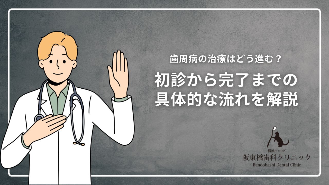 阪東橋歯科クリニックでは、日本歯周病学会が示す歯周病治療ガイドラインに基づき、科学的根拠に沿った段階的な治療を行っています。今回は、初診から治療完了、そしてメンテナンスまでの具体的な流れを詳しく解説します。