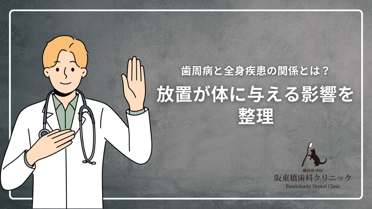 阪東橋歯科クリニックでは、歯周病治療を全身の健康管理の一環と捉え、将来の健康リスクを見据えた診療を行っています。